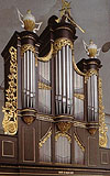 2 Manuale, 31 Ranks, 27 Register 1841 erbaut von Johann Christoph Scheuer - erhaltene Register mit * markiert 1910 Dispositionsänderung durch J. Proper 1937 Erneuerung der Trompete und Windversorgung durch Valckx & Van Kouteren 1949 Dispositionsänderung und Erneuerung der Windladen durch J.C. Sanders & Zn. 1958 Orgel umgesetzt, Trompete und Prospektpfeifen erneuert durch Sanders 1974 Restaurierung und Erweiterung um Unterpositiv und freies Pedal durch Flentrop (NL, Zaandam) + Tremulant (für das ganze Werk?) |